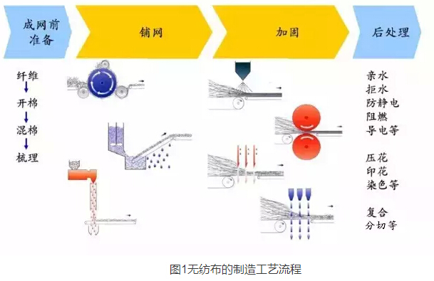 實際上無紡布的制作工藝和傳統的針織梭織布料是完全不同的。如圖示: